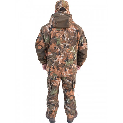 Комфортная температура эксплуатации от -5°С до +10°С. Разработан для охотников и рыболовов, эксплуатируется при температуре около 0°С. Куртка имеет эргономичный крой, не стесняющий движения. Утеплитель Alpolux (альполюкс) 100, подкладка верх полар-флис, низ шелк . Застегивается ветрозащитным разъемным замком. Имеет ветрозащитный отстегивающийся капюшон с вшитой противомоскитной сеткой. Рукава оснащены съемной сигнальной повязкой, которая обеспечивает безопасность при облавной охоте. На плечах нашита противоскользящая стропа для удобства переноски оружия, ягдташа, рюкзака. Рукава имеют налокотники со специальными вытачками для улучшения свободы движения. Брюки с подкладкой, имеют шлевки для поясного ремня. Изготовлены с завышенным поясом, утеплением поясничного отдела спины. Низ брюк имеет манжеты , защищающие икры ног от натирания, попадания мусора, снега и насекомых. На штанинах брюк имеются накладные боковые карманы. При изготовлении охотничьей одежды мы используем плащевую ткань (твил), которая не шуршит, т.к. она изготовлена из специальной нити с высоким содержанием хлопка, с пич-эффектом. Состав ткани: 35% х/б, 65% п/э, плотность 240 г/кв.м. Для защиты от влаги материал обработан водоотталкивающей пропиткой. Инновационные камуфлированные рисунки идеально маскируют охотника в любой местности. При изготовлении швейных изделий применяются высокопрочные нитки Guterman (Германия), двойной джинсовый запошивочный шов. Размерный ряд 46-64, рост 170-188.