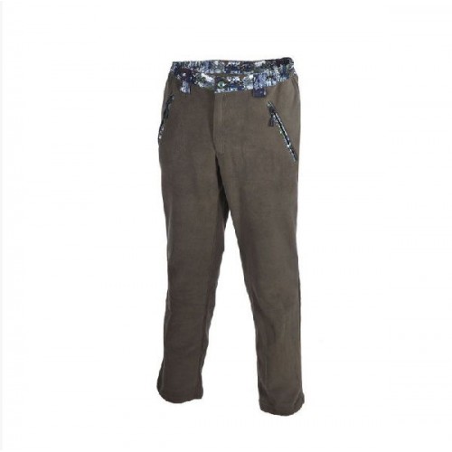 Пояс брюк собран на резинку и регулирующую тесьму. На брюках два прорезных кармана на молнии. Изделие идеально подходит как второй слой утепления.