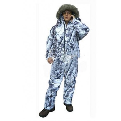 Для охоты в зимний период необходима теплая и комфортная одежда. Куртка и полукомбинезон, выполненные из синтетической ткани "Алова", приятны на ощупь и отлично сохраняют тепло. К тому же водоотталкивающие свойства не позволяют накапливаться влаге. Одежда не шуршит при ходьбе. Комфортная температура эксплуатации от -25°С до -5°С.