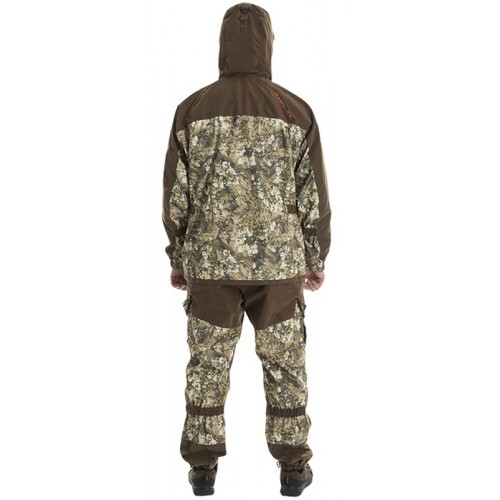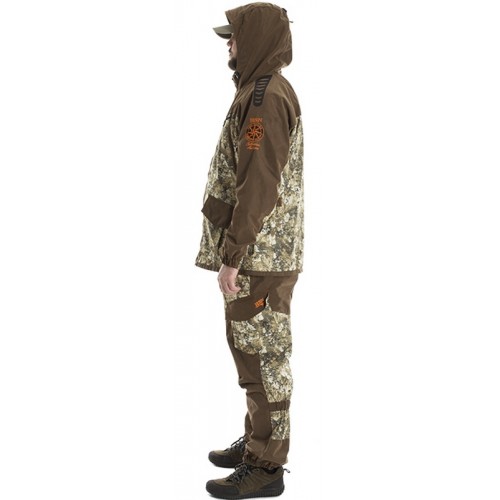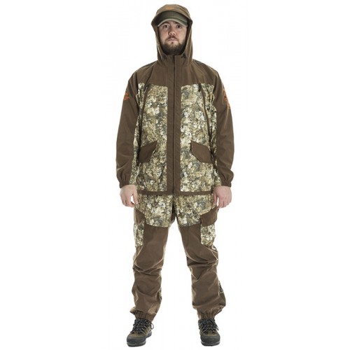Универсальный костюм «RAMBLER» изготавливается из износостойкого материала. В качестве защитных элементов применяется прочная не шуршащая, синтетическая ткань с двойным PU покрытием. Совокупность использования материалов создаёт комфортные условия эксплуатации костюма. Благодаря подобранным тканям костюм остается бесшумным, что имеет огромное значение для охотников.