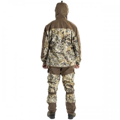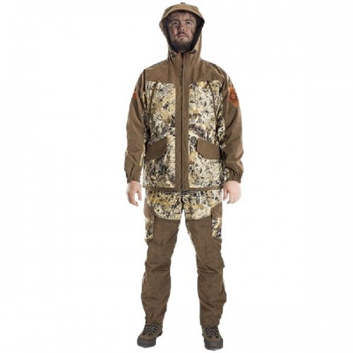 Универсальный костюм «RAMBLER» изготавливается из износостойкого материала. В качестве защитных элементов применяется прочная не шуршащая, синтетическая ткань с двойным PU покрытием. Совокупность использования материалов создаёт комфортные условия эксплуатации костюма. Благодаря подобранным тканям костюм остается бесшумным, что имеет огромное значение для охотников.