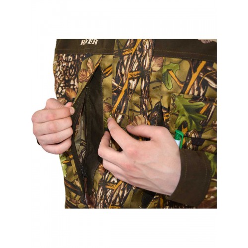 На куртке нашито множество накладных и объемных карманов, которые позволяют удобно разместить под рукой все необходимое: от спичек до фляжки. Брюки также оснащены различными карманами, в том числе для фонарика или ножен. Внизу штанины имеют манжеты, которые заправляются внутрь обуви и защищают икры ног от натирания, мусора и насекомых.