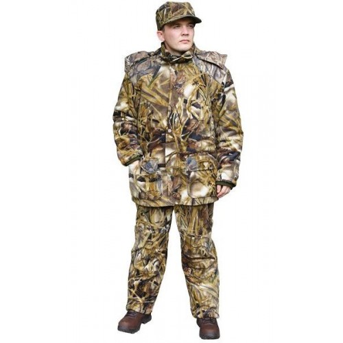 Костюм, состоящий из куртки и полукомбинезона, отлично подходит для зимней охоты. Утеплитель тинсулейт 3M не позволяет замерзнуть. Этот материал совершенно не впитывает влагу и не шуршит. Дополнительная водоотталкивающая пропитка предусмотрена на наружном слое из поларфлиса. Костюм настолько хорошо удерживает тепло, что под него не нужно надевать много одежды. Комфортная температура эксплуатации от -25°С до -10°С.