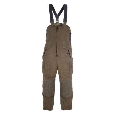 Куртка и полукомбинезон, входящие в состав охотничьего костюма, подходят для использования в зимний период. Утеплитель Alpolux рассчитан на самые низкие температуры. Бесшумность при ходьбе обеспечивается за счет нешуршащего материала. Мембранная ткань с высокими показателями водонепроницаемости, а также проклеенные швы обеспечивают сухость даже при сильном дожде. К карманам прикреплены съемные патронташи. Температурный интервал использования костюма от-10 до -35С.