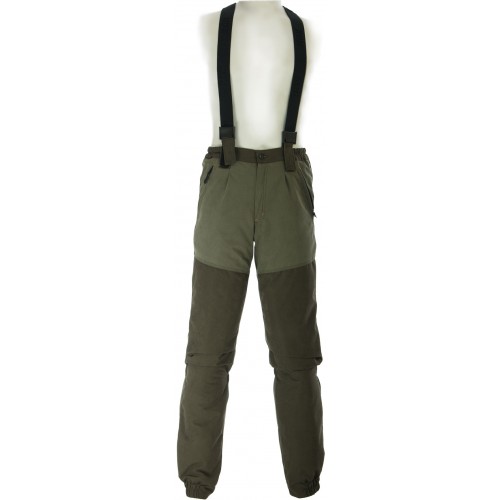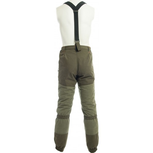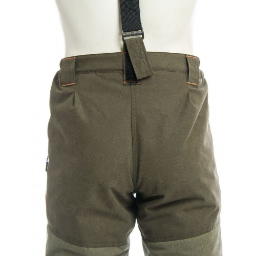Брюки с притачным поясом и пятью шлевками для ремня. Брюки на съемных подтяжках, которые крепятся при помощи липучки «велькро». Лямки регулируются при помощи пластиковых пряжек. Ширинка на молнии.