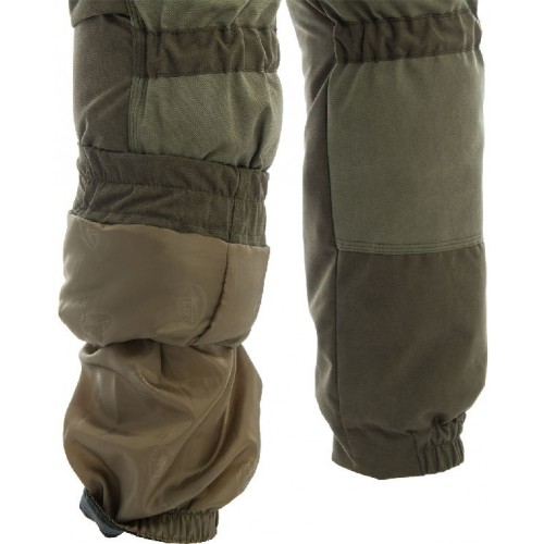 В нижней части брюк имеется «юбка» - неразъемная деталь стянута резиновой тесьмой с не скользящей поверхностью, плотно обхватывает ногу в районе щиколотки. Низ брюк частично собран на резинку для более плотного прилегания.