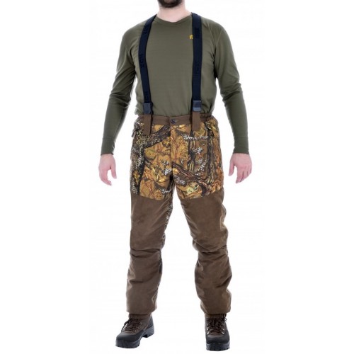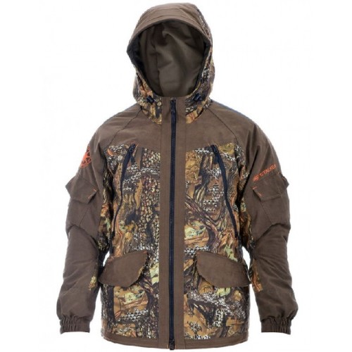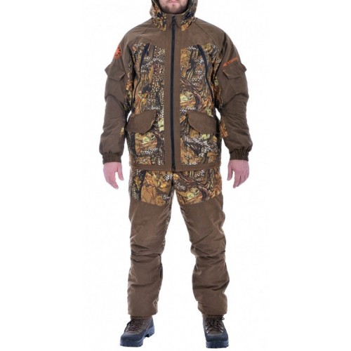Костюм состоит из куртки и брюк на съемных подтяжках. Отличается специальным анатомическим кроем. Он не стесняет движений. Плечи и зона седалища дополнительно усилены бесшумной мембранной тканью Finland .