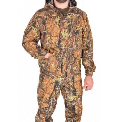 Изготовлен из специальной ткани с содержанием хлопка (35% пэ и 65% хб) с пич эффектом. Инновационные камуфлированные рисунки идеально маскируют охотника в любой местности.