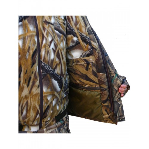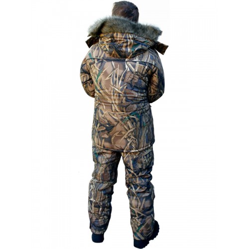 Комплект из верхней куртки, куртки-утеплителя, застегивающейся на отдельную молнию, и полукомбинезона, предназначен для времяпрепровождения при максимально низких температурах. Синтетическая ткань Алова, мягкая на ощупь, обладает отличными теплоизоляционными свойствами. К тому же материал не накапливает влагу и не шуршит при ходьбе. Воротник-стойка и утепленный капюшон, застегивающийся на молнию, защищают от ветра. Комфортная температура эксплуатации от -45° до - 20°C.