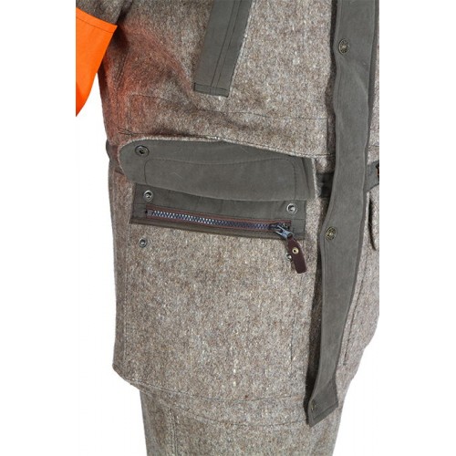 Рукава оснащены съемной сигнальной повязкой, убирающейся в нарукавные карманына малниях. Сигнальная повязка обеспечивает безопасность при облавной охоте. Все карманы закрываются на молнии.
