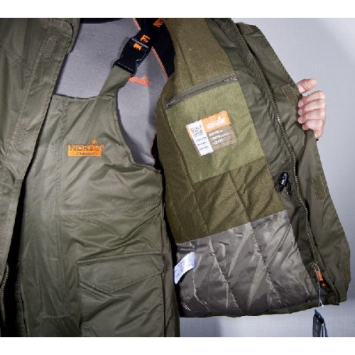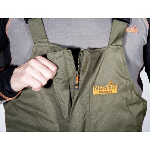 Зимний костюм Norfin ELEMENT предназначен для мягких зим и межсезонья. Изготовлен из мембранной ткани Nortex Breathable. Анатомический крой обеспечивает комфорт при носке. Все швы качественно проклеены, что предотвращает проникновение влаги. Капюшон можно отстегивать, он имеет козырек и регулировку объема. Широкий воротник защищает от ветра. Полукомбинезон отлично прикрывает спину. Имеет манжеты, регулируемые с помощью молний и застежек.