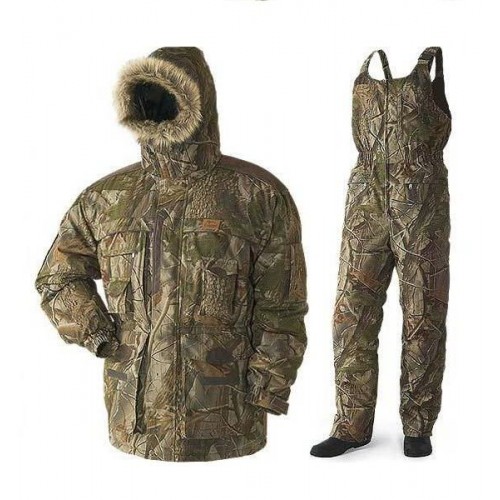 Костюм, состоящий из куртки, подстежки и полукомбинезона, отлично подойдет для охоты. Теплая куртка и объемный капюшон с отстегивающейся меховой опушкой регулируются по размеру. Одежда оснащена семнадцатью внешними карманами на куртке и четырьмя на полукомбинезоне с регулируемыми лямками. Специальный утеплитель хорошо пропускает воздух и не впитывает влагу. Нижняя температура - 25
