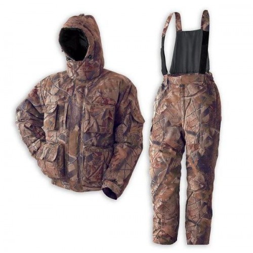 Зимний костюм, утепленный поларфлисом, прекрасно подойдет для охоты. Съемный капюшон укороченной куртки регулируется по высоте и объему. Нижняя резинка защищает от ветра. Четырнадцать внешних и три внутренних кармана помогут всегда иметь под рукой все необходимое. Брюки оснащены съемной спинкой. Их можно корректировать по высоте с помощью лямок, а их ширина изменяется молнией и липучкой. Нижняя температура - 20