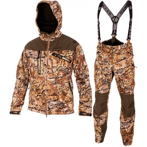 Костюм ALET обеспечивает прекрасную защиту от ветра и несильных осадков, при сохранении выдающихся дышащих свойств. Комплект позиционируется как лёгкая и водостойкая демисезонная одежда для охоты, которую можно также использовать и в зимний период, сочетая различные теплоизолирующие слои одежды SHAMAN.