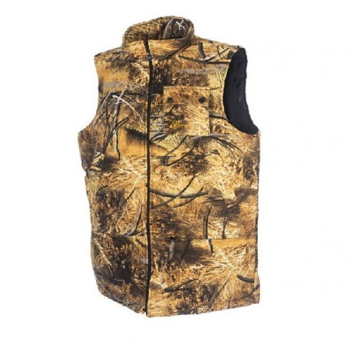 Жилет с воротником-стойкой, застегивается на молнию. Оснащен пятью карманами - 1 нагрудный карман на кнопках, 2 кармана, застегивающиеся молнией на талии и 2 поясных классических кармана.