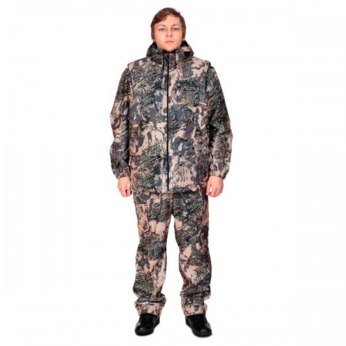 Костюм подходит как для повседневной деятельности, так и для активного отдыха, рыбалки и охоты. Материал верха - Alova Premium , не пропускает влагу снаружи и хорошо "дышит". Подкладка - Трикотажная сетка , отлично выводит влагу с тела. Утеплитель - Alpolux , отлично противостоит холодной погоде. Главным преимуществом является комбинация верха: можно носить только куртку или только жилет.
