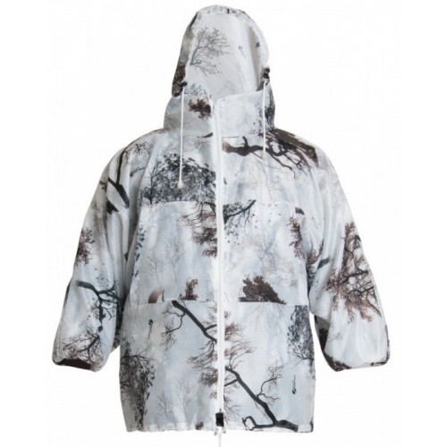 Маскировочный костюм «Метель» одевается поверх тёплой одежды и предназначен для зимней охоты. В этом костюме легко замаскироваться в зимнем лесу и на заснеженном поле. Костюм состоит из куртки «анорак» и брюк. Изготавливается из бязи с водоотталкивающей пропиткой и ацетатного шелка, ткань не шуршит. В солнечный день костюм не будет бликовать и благодаря камуфляжной окраске поможет вам максимально замаскироваться. Куртка костюма застёгивается на молнию, так же есть прорези, для быстрого доступа к карманам одежды. Голову охотника защищает стягиваемый капюшон с фиксатором. В пояс и низ брюк вшита надёжная резинка. В этом костюме вы не будете цепляться за вертки.
