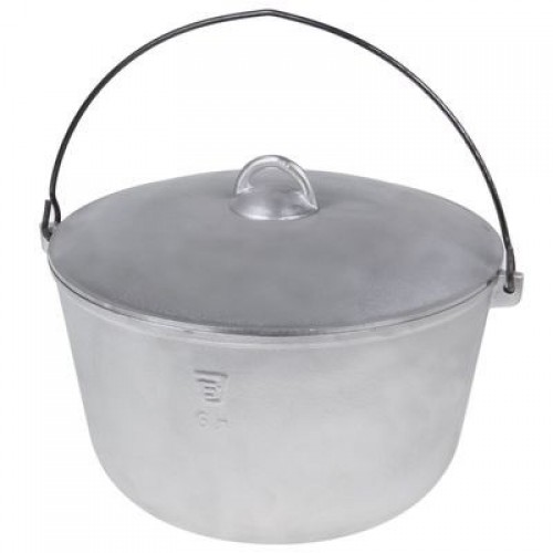 Котелок имеет круглую ручку для того, чтобы повесить его над костром. Плотно прилегающая крышка предотвратит попадание грязи в приготовляемую пищу. Толстые стенки котелка обеспечат долгий срок использования