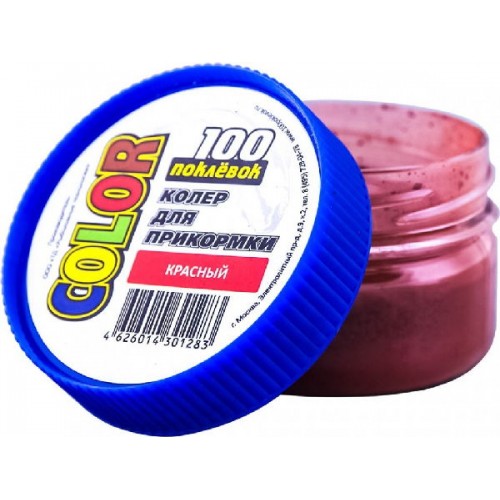 Специально для окрашивания прикормочных смесей в необходимый цвет создана серия красок для прикормки 100 Поклевок. В серии представлены 5 цветов: коричневый, желтый, красный, зеленый и черный. Краска подходит для применения в зимний и летний период. Возможно смешение цветов в любых пропорциях. В составе красок использованы только натуральные красители. Баночки краски 50 грамм достаточно для изменения цвета 10 кг прикормки. При использовании краски следует применять перчатки, использовать краску лучше перед увлажнением.