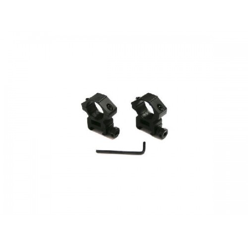 Ширина планки 12 мм. Диаметр 25,4 мм. Материал колец - алюминиевый сплав. Комплект состоит из 2-х колец.