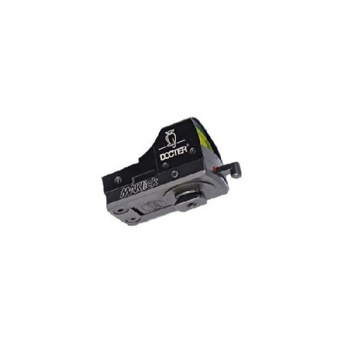 Крепление MaKlick на передние основания МАК или Апель для коллиматора Docter - крепление для коллиматора Docter Sight на передние базы поворотных кронштейнов. Кронштейн является быстросъемным, снимается и устанавливается за доли секунды. Фиксация кронштейна на основании производится поворотом рычажка. Подходит для любого стандартного переднего основания. По сути, наиболее универсальный кронштейн для решения проблемы установки любого коллиматора на любое оружие. Устанавливается непосредственно на MakClick. Материал: высокопрочный анодированный алюминиевый сплав.