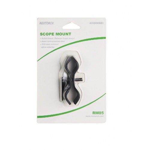Кронштейн для установки фонаря на ружье NexTORCH RM85. Крепление имеет болт-эксцентрик для быстрого крепления и установки фонаря на ружье. RM85 выполнен из прочного закаленного металла с анодированным покрытием черного цвета. Внутренние стороны крепления покрыты мягким силиконовым материалом, что уберегает ружье и фонарь от повреждения. Крепление для фонаря на ружьё NexTORCH RM85 надежно фиксирует его, прочно удерживая его при выстреле из оружия любых калибров.