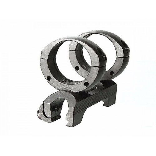 Кронштейн БА предназначен для установки оптических прицелов на оружие, имеющее горизонтальную верхнюю планку типа “ласточкин хвост” (в том числе беззаходную) с шириной у основания 10 мм., например, “Бекас-авто”. Позволяет пользоваться одновременно оптическим и открытым прицелом. Выполняется из стали, имеет прочное оксидное покрытие. Крепежный диаметр 30 мм. Высота установки прицела 40 мм. Габариты кронштейна 43,5х57х86 мм. Масса 250 гр. Цвет черный.