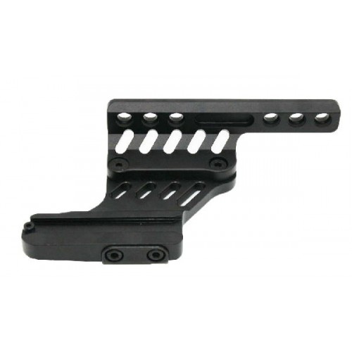 Кронштейн фиксируется двумя винтами на боковой планке. Сверху кронштейна находится основание MAK для установки любых верхов. Можно поставить как кольца так и планку Weaver или быки под европризму. Используя кольца различной высоты или подкладки можно придать необходимый наклон кронштейны.