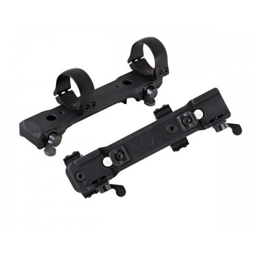 Поворотный кронштейн на раздельных основаниях на CZ-527 кольца 26 мм на раздельных основаниях на CZ-527, Brno FOX, ZKB 680, с кольцами диаметром 26 мм, позволяет максимально гибко решать задачи, связанные с установкой оптики на оружие с продольно-скользящим затвором, особенно при необходимости использования нескольких прицелов с различными характеристиками. Он обеспечивает высокую стабильность положения прицела независимо от калибра оружия. Система предполагает установку на оружие специальных баз (передней и задней), которые фиксируются на постоянной основе. Благодаря системе MAKschwenk стрелок может в считанные секунды оснастить оружие прицелом, сохраняя его настройки пристрелки! Также легко и быстро можно снять прицел, освобождая открытые прицельные приспособления оружия.