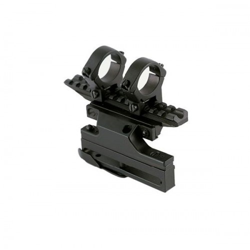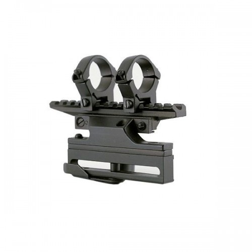Кронштейн под оптику ВПО 102 сб 9. Предназначен для карабинов Вепрь-Хантер. Крепление боковое. Имеет два съемных кольца диаметром 25,4мм, а так же базу на Weaver. Изготовлен из сплава металлов. Цвет черный.