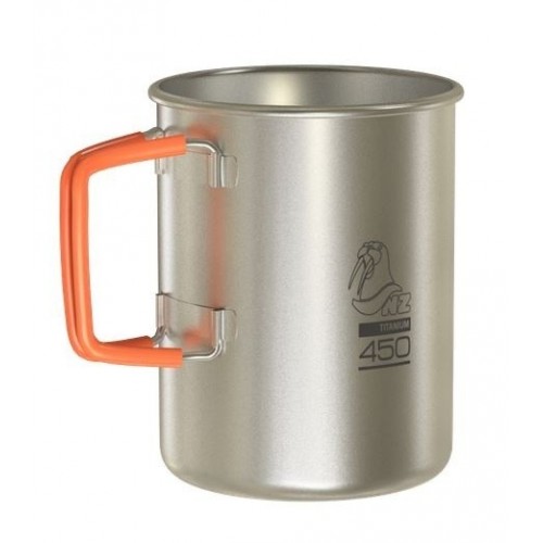 Титановая одностенная кружка 450 мл со складными ручками. Кружка не обжигает руки и губы, имеет минимальный вес, складные, не греющиеся ручки из титана, покрытые огнеупорным силиконом.