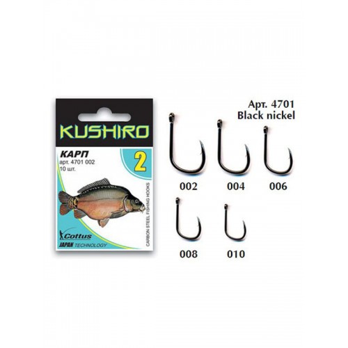 Крючки Карп предназначены для ловли сильной рыбы. Классическая форма крючка, круглый загиб, немного отогнутое внутрь жало. Идеально подходят для всех видов ловли.