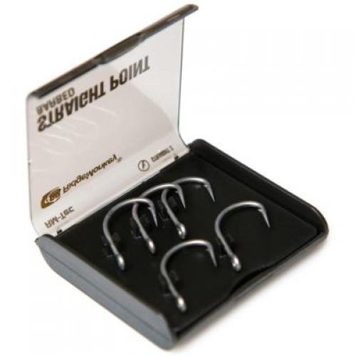 Итак, всего выпущено 4 вида крючков, которые охватывают все условия ловли: Beaked Point, Chod Hook, Straight Point, Curved Shank. Все 4 модели имеют покрытие RM-Tec GunMetal, которое является супер-гладким и защитным, супер-острое жало и усиленный выкованный изгибам.