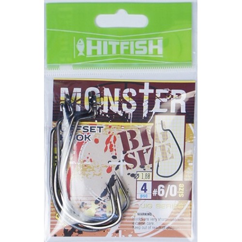 Офсетник Monster Offset от торговой марки Hitfish предназначен для охоты за трофейными экземплярами. У этого офсета небольшая ступенька, округлое ушко, цевье средней длины. Округлый поддев и бородка обеспечат надежное удержание пойманной добычи. Данный крючок представлен в нескольких размерах.