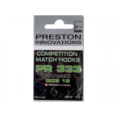 Серия крючков PRESTON Competition Hooks 333 выпущена специально для тех, кому особенно важны качество и мощь крючка. Произведены крючки в Японии, что, в силу ряда причин, свидетельствует об их качестве и безупречном исполнении. Крючки отличаются широким поддевом. Среди других особенностей можно упомянуть тонкую проволку, форму "кристалл" и никелевое покрытие. Предназначены для ловли плотвы, леща и уклейки.