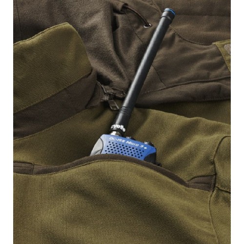 Верх куртки выполнен из прочного полиамида, специальные вставки из плотного материала Cordura в местах большего износа увеличивают срок службы охотничьей одежды, водоотталкивающая пропитка DWR дополнительно отталкивает грязь и воду.