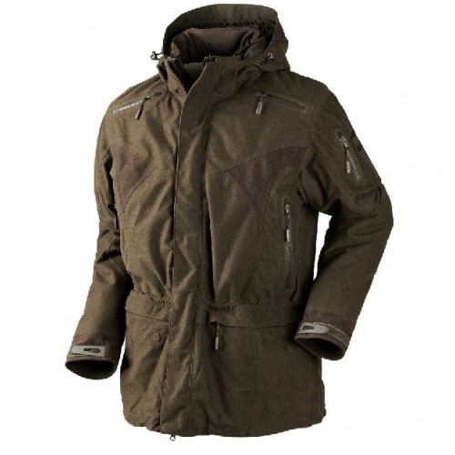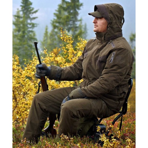 Прочная зимняя охотничья куртка с водонепроницаемой, воздухопроницаемой мембраной Gore-Tex и теплоизоляцией Thinsulate™ Platinum . Внешний слой куртки выполнен из прочного полиэстера Polyester . Ткань из которой изготовлена куртка имеет ворсистую поверхность – применяемый материал не шуршит. Это уменьшает вероятность быть обнаруженным дичью. Влагостойкость материала спасает охотника и в дождь и снег, материал не впитывает воду, и характеризуется также своими теплозащитными свойствами. Куртка Harkila гарнирует защиту от сильного ветра в непредсказуемых условиях охоты.