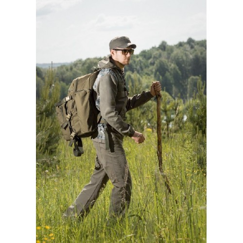 Сшита из качественной и прочной смесовой ткани Cotton Peach . Удлиненная куртка, втачной капюшон, резинки по низу рукавов, спокойная расцветка и вентиляция по всей ширине спины делают этот костюм незаменимым для лесных прогулок.