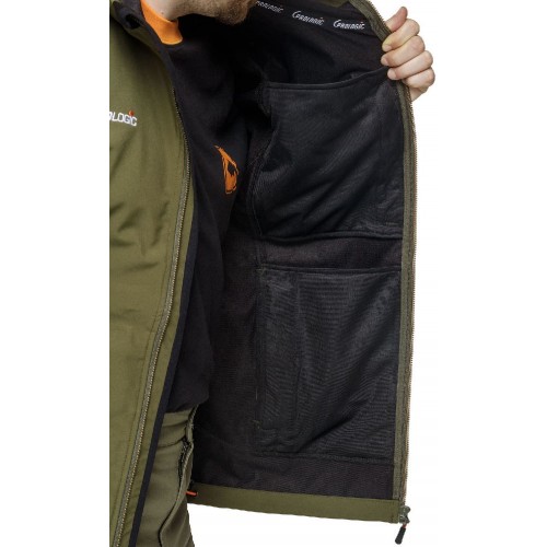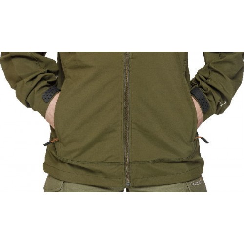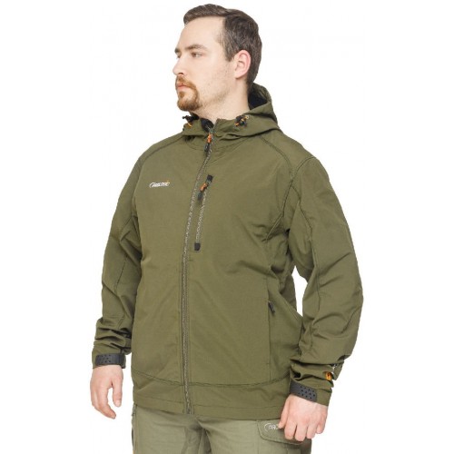 Она сшита из эластичного и приятного на ощупь Softshell , не сковывающего движения при забросе. TPU -мембрана куртки с показателем гидростатичности 8000 выдерживает интенсивный дождь, и позволяет находится на мелкой мороси в течение многих часов.
