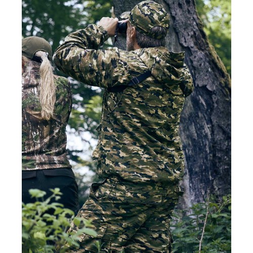 Короткая охотничья куртка в камуфляже Feral от компании Seeland, выполненная в камуфляжной расцветке, надежно защитит от плохой погоды и сделает охотника «невидимым» на фоне лесной растительности. Она выполнена из бесшумной износостойкой ткани, отлично пропускающей воздух. Для дополнительной вентиляции имеется сетчатая подкладка Трикотажная сетка .