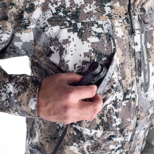 Sitka Equinox Jacket Optifade Elevated является самой легкой «дышащей» курткой, защищающей от влаги и не стесняющей движения. Её вес – всего 431 грамм, что является дополнительным преимуществом при ходовой охоте или высокой активности.