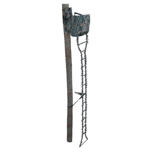 Лабаз Ameristep с лестницей, приставной к дереву, высота 5,4 м является великолепным портативным устройством для маскировки охотника в ветвях деревьев. Это устройство позволяет оперативно добраться до нужных ветвей и оборудовать в них засидку. Лестница крепится к дереву, создавая надежную опору для верхолаза. Подножка открывается для безопасного подъема, поэтому устройство действительно очень удобное. Сборка и разборка занимает не больше минуты, что обеспечивается съемной рамой. Модель оборудована сидением размером 38*38*45 см с подлокотниками и платформой для ног для большего комфорта, имеет съемную подставку для ружья. Выдерживает вес охотника до 136 кг.