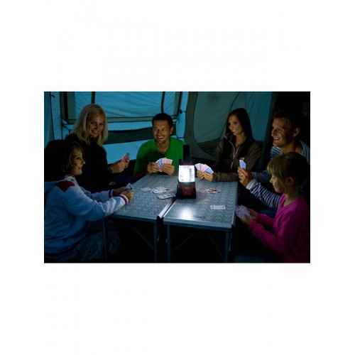 Лампу Coleman можно повесить в разных положениях, даже боком - невероятно яркое портативное освещение. Ручка может быть перемещена так, чтобы повесить горизонтально по отношению к земле, крюк и петля ручки позволяет легко подвесить практически в любом месте. Световой поток: 141 люмен (20 Вт)в режиме «high» и 58 люмен (11 Вт) в режиме «low». Дальность луча: 8м в режиме «high» и 5м в режиме «low». Время работы: 155 ч в режиме «low» и 65 ч в режиме «high». Работает от 4-х батареек типа D (6V) или же зарядного аккумулятора CPX 6V(продается отдельно). Вес: 1,3 кг с аккумулятором и 0,7 кг без аккумулятора.