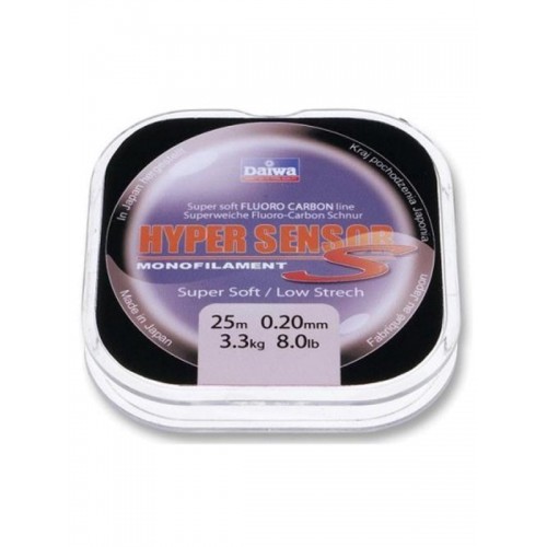 Флюорокарбоновая леска нового поколения Daiwa Hyper Sensor отличается низким индексом преломления, что делает ее невидимой в воде. Низкая растяжимость и износостойкость являются основными характеристиками Daiwa Hyper Sensor. Рулон 25 метров идеально подходит для использования в качестве поводкового материала, а широкая гамма размеров позволит подобрать леску для вашего способа ловли.