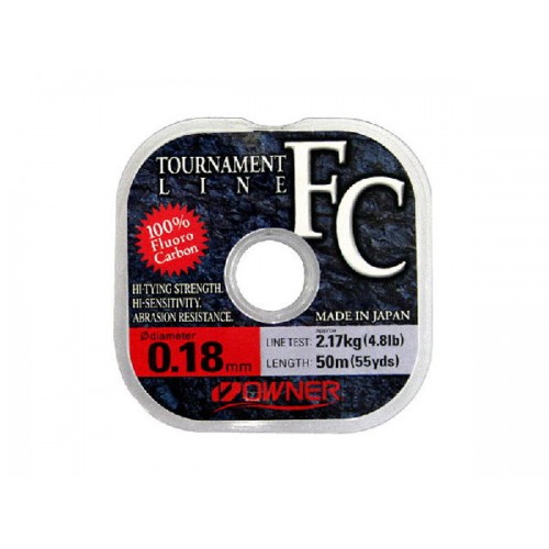 Флюорокарбоновая леска спортивного класса. Основное отличие флюорокарбона от обычных монофиламентных лесок состоит в том, что будучи помещенным в воду, за счет несколько иного угла преломления света, он становится практически невидимым со всеми вытекающими отсюда плюсами. Кроме того, флюорокарбон имеет несколько больший удельный вес чем вода, что обеспечивает его тонущие свойства. Флюорокарбоновая леска Owner FC предлагается в размотке по 50 метров в диаметрах от 0,14 до 0,31 мм.