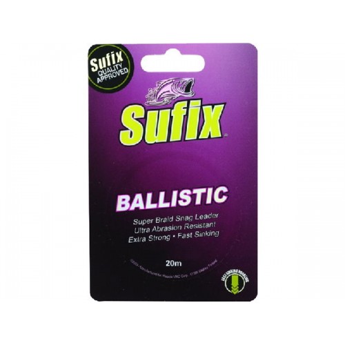 Шнур Sufix Ballistic предназначен для использования в качестве поводочного материала при донной ловле карпа или другой рыбы. Изготавливается без применения свинца, но все равно быстро тонет и маскируется на дне. Отличается особой прочностью, износостойкостью и мягкостью. Сплетен из материала Dyneema, поэтому обладает нулевой растяжимостью. Благодаря своим свойствам не настораживает рыбу при поклевках и способен справится с любым трофеем.