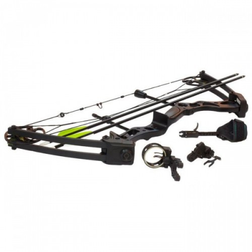 Комплектация: лук, прицел с 3 пинами, полочка, релиз, воск, пип-сайт, петелька, 2 алюминиевые стрелы.