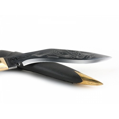 Nepalese Biltong 5 производства Desperado - небольшой нож длиной 5 дюймов. Кукри не очень большого размера, поэтому может использоваться в качестве карманного ножика для хозяйственных целей, и как сувенир. Рукоять ножа изготовлена из дерева и латуни. Между рукоятью и клинком - латунный больстер.