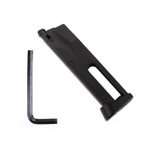 Магазин для газобаллонного AIRSOFT-пистолета Gletcher BRT 92FS-A - полноразмерный магазин, включающий в себя газовый клапан, отсек для размещения баллона СО2, скрытый поджимной винт, подпружиненный подаватель шариков. Магазин Gletcher BRT 92FS вмещает 26 шариков калибра 6 мм. В комплект поставки входит ключ-шестигранник для закручивания поджимного винта баллона.