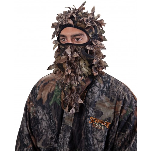 Эластичная маска Allen предназначена для маскировки лица во время охоты благодаря нашитой на ткань листве. Она хорошо вентилируется, полностью скрывает под собой голову охотника. Сзади маску можно утянуть с помощью вшитой резинки.